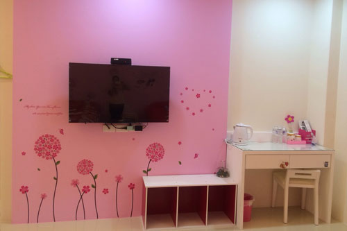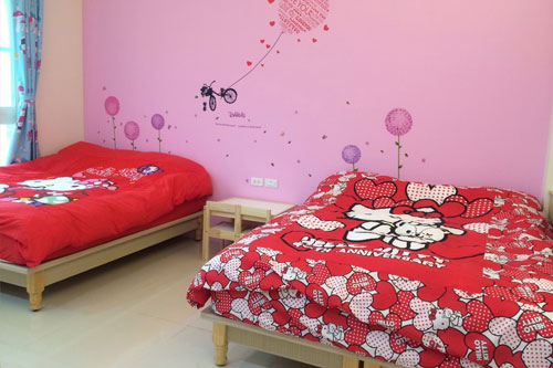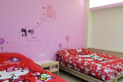 幸福城堡四人套房以粉色為主題,佈置可愛溫馨、空間大,適合大人與小朋友一起在裡面遊玩。